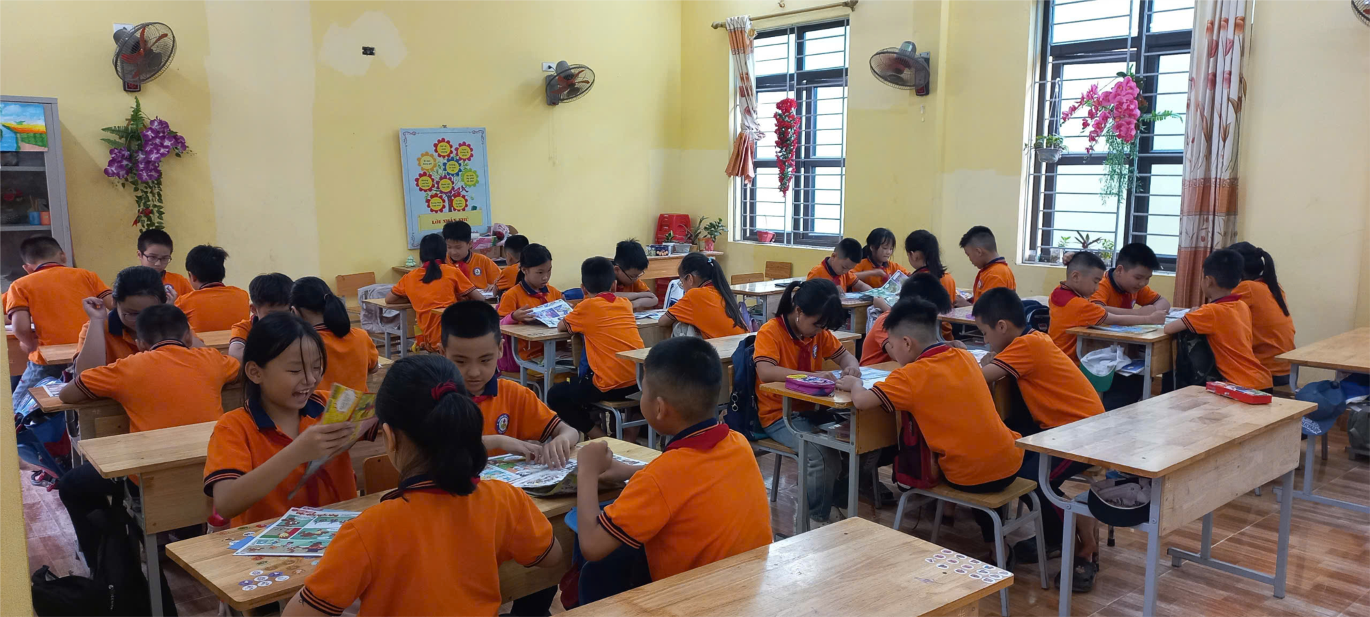 Ngoài ra, nhà trường còn tổ chức thi vẽ tranh theo sách, kể chuyện theo sách, và trưng bày sách theo chủ đề: “Bác Hồ với thiếu nhi”, “Biển đảo quê hương”, “Mẹ và cô giáo”,... Những hoạt động này không chỉ giúp học sinh tiếp cận sách một cách nhẹ nhàng, hứng thú mà còn rèn luyện kỹ năng thể hiện cảm xúc, khả năng tư duy và sáng tạo.