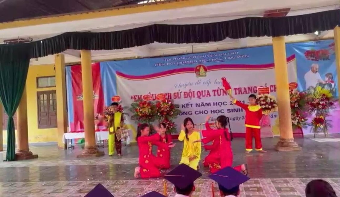 Thực hiện kế hoạch tổ chức các hoạt động chào mừng kỷ niệm các ngày lễ lớn trong tháng 5; Thực hiện Chương trình công tác Đội và phong trào thiếu nhi năm học 2021-2022; Liên đội Tiểu học Tân Viên tổ chức Chuyên đề Đội cấp Huyện “Em yêu lịch sử Đội qua từng trang sách”