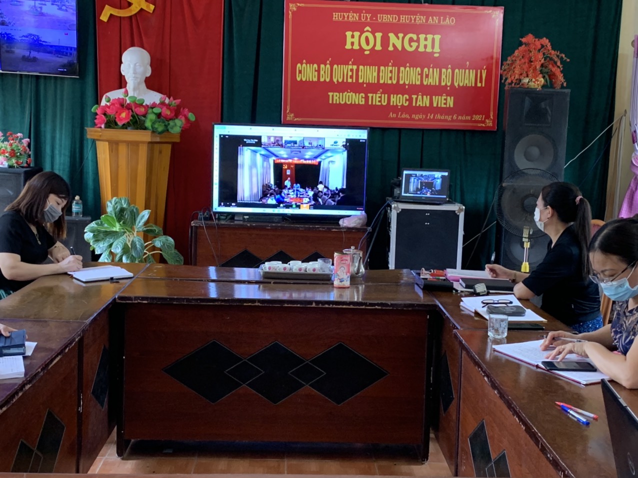 Sáng 16/8, tại điểm cầu Sở Giáo dục và Đào tạo thành phố, đồng chí Vũ Văn Trà, Phó Giám đốc Sở Giáo dục và Đào tạo thành phố chủ trì Hội nghị trực tuyến sơ kết năm học 2020 – 2021 Giáo dục Tiểu học. Tại điểm cầu Trường Tiểu học Tân Viên các bộ quản lý và tổ khối trưởng đã có mặt đông đủ để dự hội nghị.