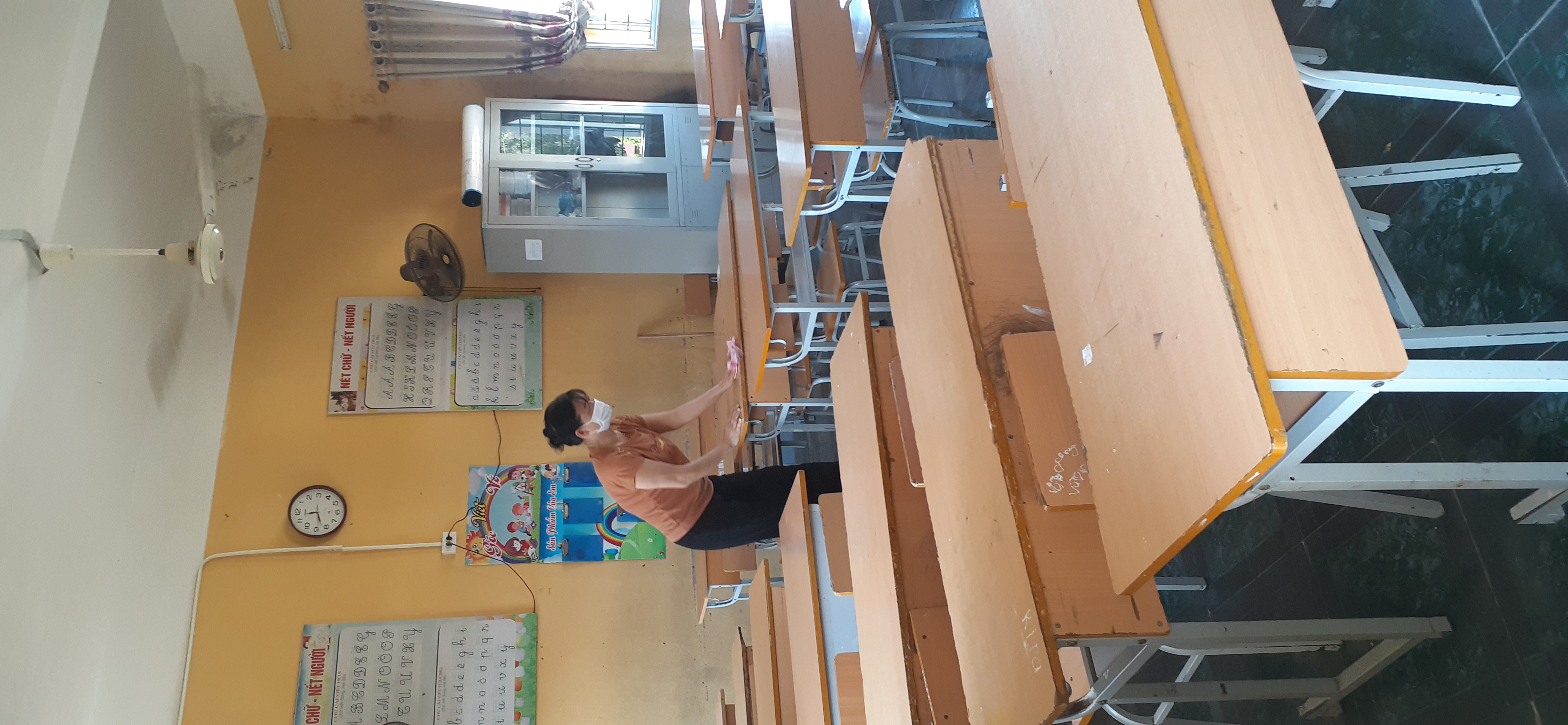 Trước tình dịch bệnh Covid-19 vẫn còn đang diễn biến phức tạp, nhằm đảm bảo công tác vệ sinh đẹp, an toàn, phòng chống dịch bệnh chuẩn bị cho học sinh sẵn sàng đến trường chào đón năm học mới 2022 - 2023, giáo viên khối 5 tổng vệ sinh lớp học.