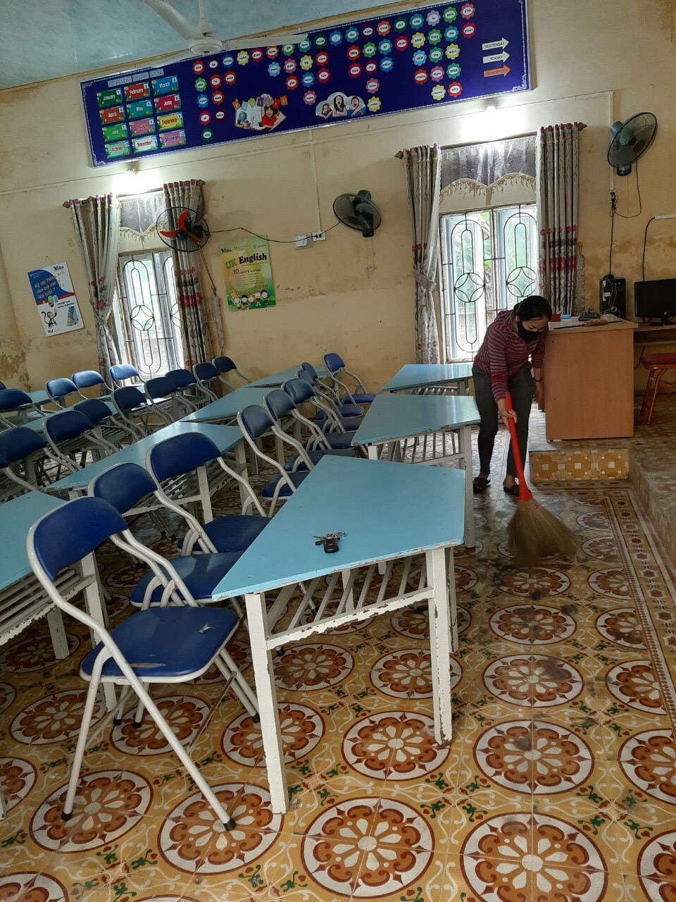 Ban giám hiệu nhà trường cũng thường xuyên kiểm tra , giám sát việc thực hiện phòng dịch ở các lớp học. Đặc biệt, nhà trường còn yêu cầu giáo viên chủ nhiệm phải kiểm tra, theo dõi sức khỏe của học sinh đo thân nhiệt cho học sinh trước khi đến trường nếu phát hiện trường hợp học sinh nào có biểu hiện sốt, ho, khó thở... phải báo ngay cho nhân viên y tế nhà trường.,khi bước vào trường các em học sinh cũng như toàn bộ cán bộ, giáo viên, nhân viên nhà trường đều phải sát khuẩn tay, đo thân nhiệt và đeo khẩu trang.