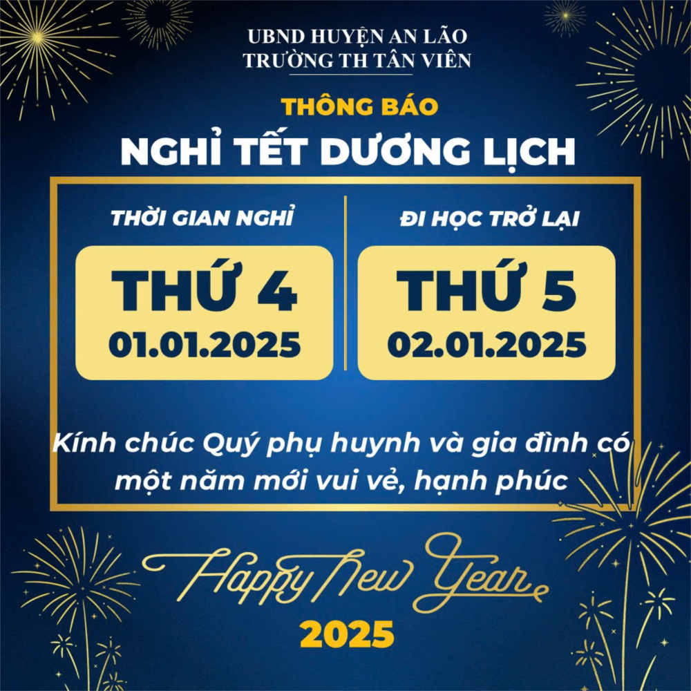 🎉Trường TH Tân Viên thông báo lịch nghỉ Tết dương lịch 2025🎉