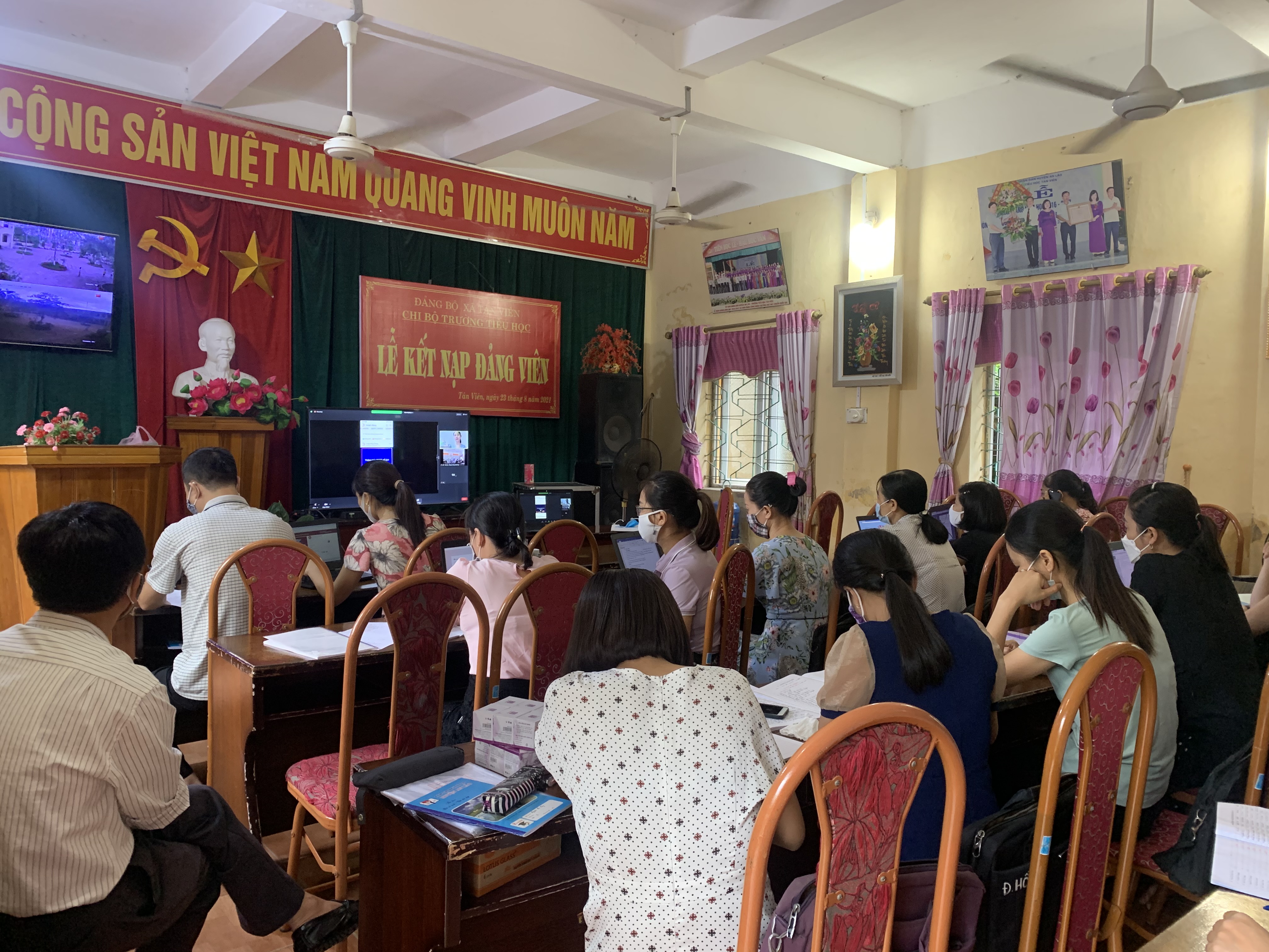 Sáng 27/8/2021, Công ty Vietel đã tổ chức Tập huấn trực tuyến phần mềm enetViet cho toàn thể GV nhằm tăng cường kết nối trực tuyến, nâng cao chất lượng tương tác đa chiều trong thực hiện nhiệm vụ quản lý và chuyên môn của nhà trường...