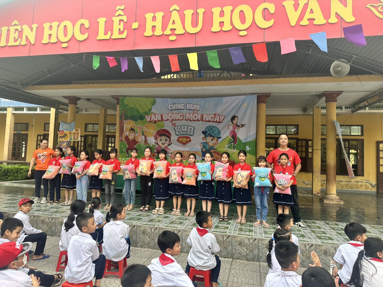 Chiều ngày 24/4 dưới sự chỉ đạo của BGH Liên đội TH Tân Viên phối hợp với Công ty cổ phần Sữa Quốc tế (IDP) - Nhãn hàng KUN tổ chức trao quà cho các em học sinh và thực hiện chương trình “Thiếu nhi Việt Nam - Học tập tốt, rèn luyện chăm” năm học 2022-2023. Trong khuôn khổ chương trình, nhiều hoạt động ý nghĩa đã được triển khai, mang lại những giá trị tích cực, tạo điều kiện thuận lợi để các em được trải nghiệm, tìm hiểu kiến thức, rèn luyện sức khoẻ, trau dồi kỹ năng và làm nhiều việc tốt. Thay mặt Liên Đội cảm ơn ông Hoàng Quốc Uy - Giám sát kinh doanh công ty cổ phần Sữa Quốc tế (IDP) - Nhãn hàng KUN đã trao tặng 13 phần quà cho các học sinh có hoàn cảnh khó khăn và 100% các em học sinh được uống sữa do công ty cổ phần sữa IDP tài trợ