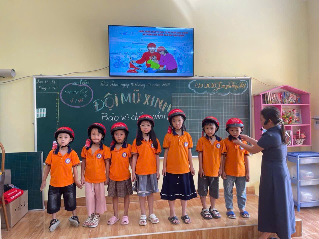 Dưới đây là một số hình ảnh trao tặng mũ bảo hiểm cho học sinh lớp 1.