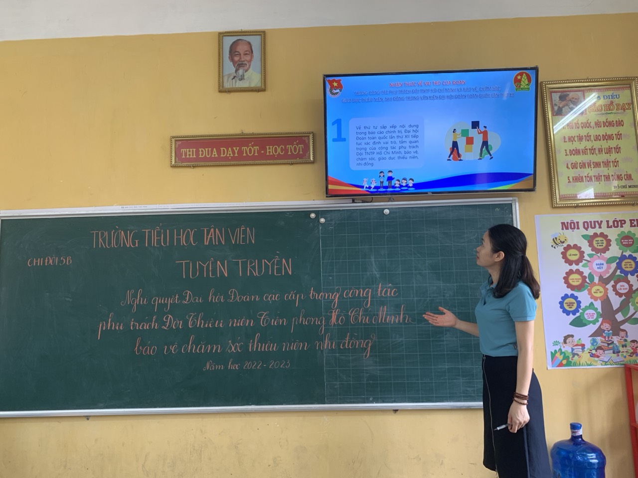 LIÊN ĐỘI TH TÂN VIÊN TUYÊN TRUYỀN NGHỊ QUYẾT ĐẠI HỘI ĐOÀN CÁC CẤP TRONG CÔNG TÁC PHỤ TRÁCH ĐỘI TNTP HỒ CHÍ MINH.