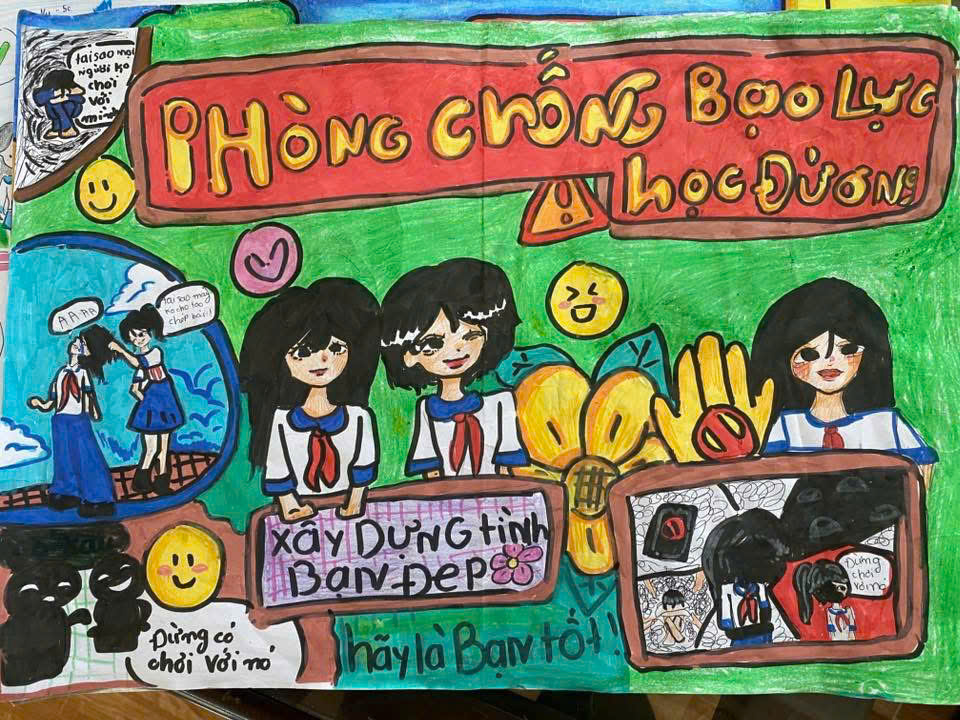 Mỗi bức tranh gửi đi là một lời cam kết của thế hệ trẻ: "Cùng nhau xây dựng môi trường giáo dục an toàn, văn minh và tràn đầy tình thương".