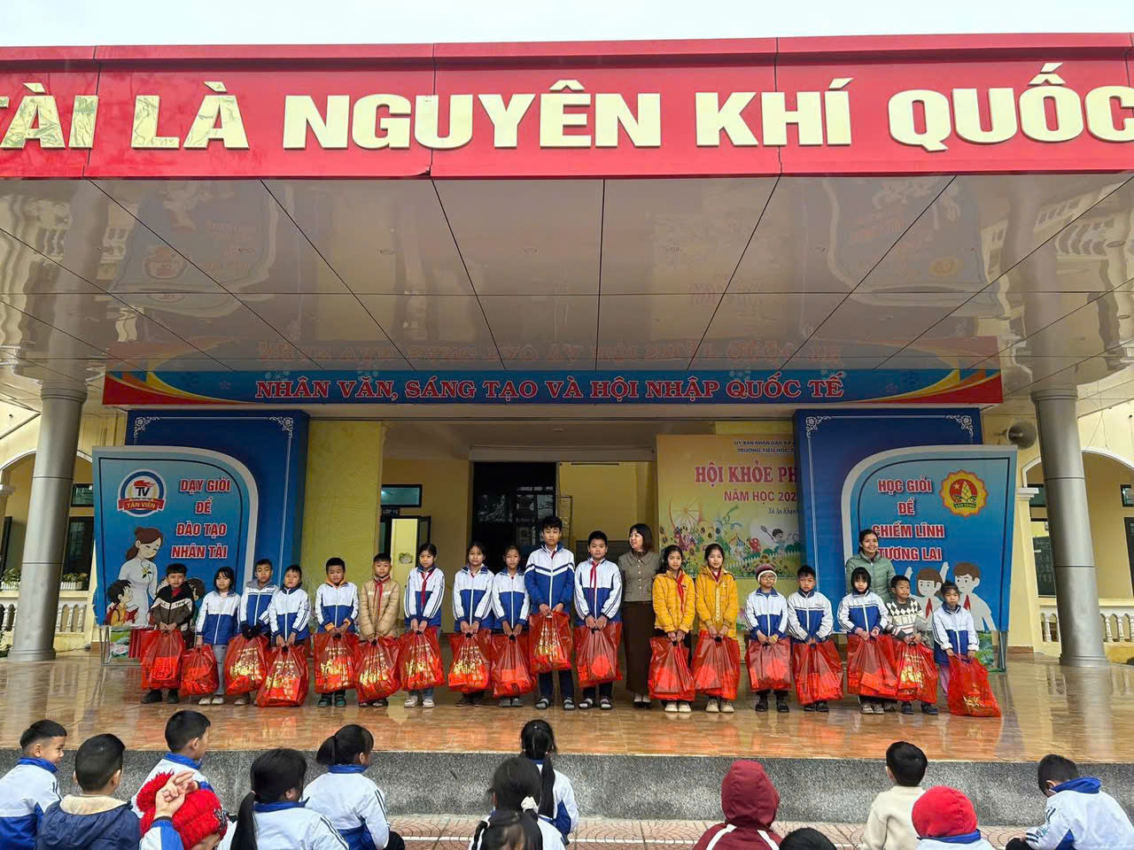 Nhà trường tuyên dương các tập thể lớp xuất sắc, học sinh tiêu biểu trong tháng; đồng thời trao tặng 19 suất quà đón Tết cho học sinh vượt khó, lan tỏa tinh thần sẻ chia.