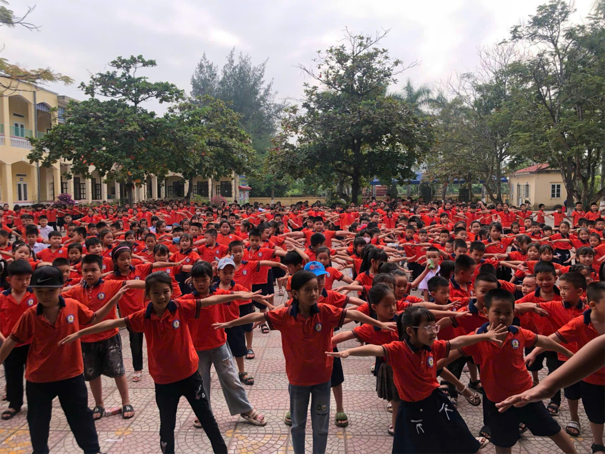 Tại sân trường, khi tiếng nhạc sôi động vang lên, tất cả các khối lớp đều đồng loạt hòa mình vào những bài tập thể dục vui tươi và đầy nhịp điệu. Chúng ta hãy cùng duy trì và tham gia thật nhiệt tình các giờ thể dục giữa giờ để có một cơ thể khỏe mạnh, một tinh thần sảng khoái và một ngày học tập đầy hiệu quả nhé.