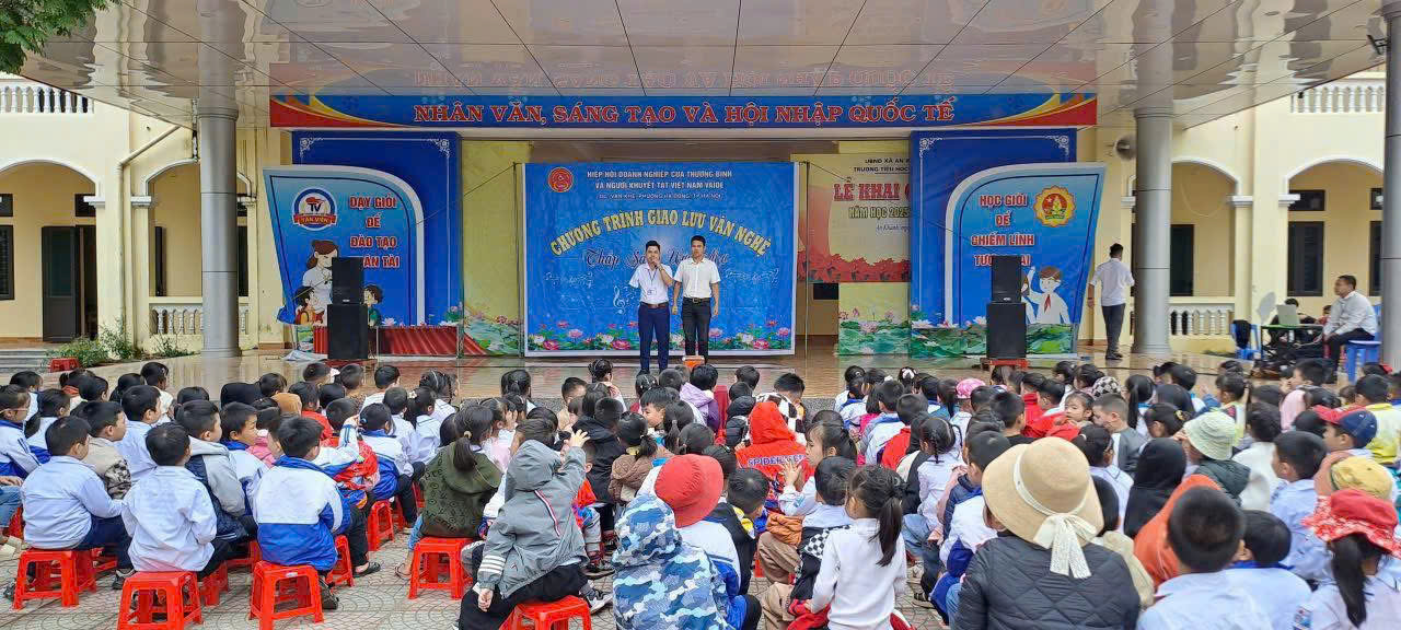 Trong cuộc sống, có những con người tuy mang trên mình những khiếm khuyết về cơ thể nhưng lại tỏa sáng bởi nghị lực phi thường và niềm tin yêu cuộc đời. Sáng ngày 5 tháng 11 năm 2025, thầy và trò Trường Tiểu học Tân Viên đã có cơ hội gặp gỡ, giao lưu với những con người đặc biệt ấy – các nghệ sĩ của Trung tâm Dạy nghề VAIDE – Hiệp hội Doanh nghiệp của Thương binh và Người khuyết tật Việt Nam.