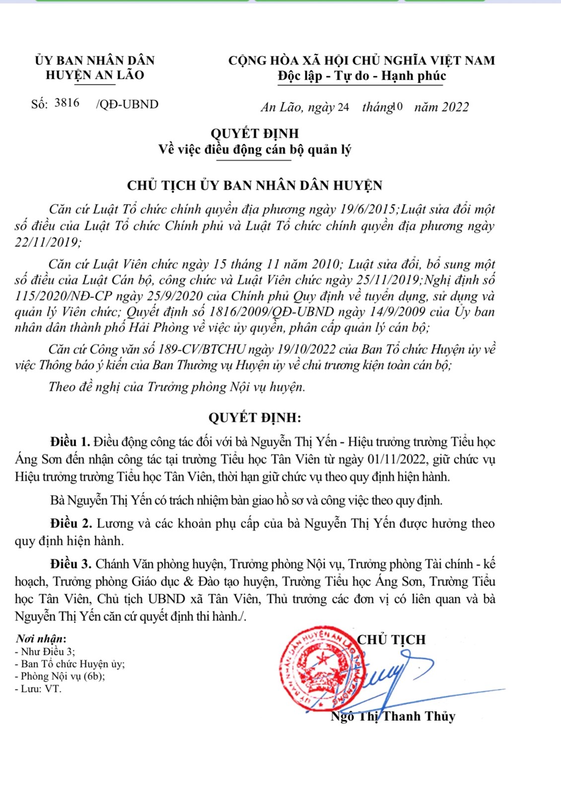 Ngày 01/11/2022 đồng chí Nguyễn Thị Yến được điều động giữ chức vụ Hiệu trưởng trường TH Tân Viên thay đồng chí Nguyễn Thị Liêm được nghỉ hưu. Trân trọng thông báo!