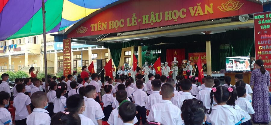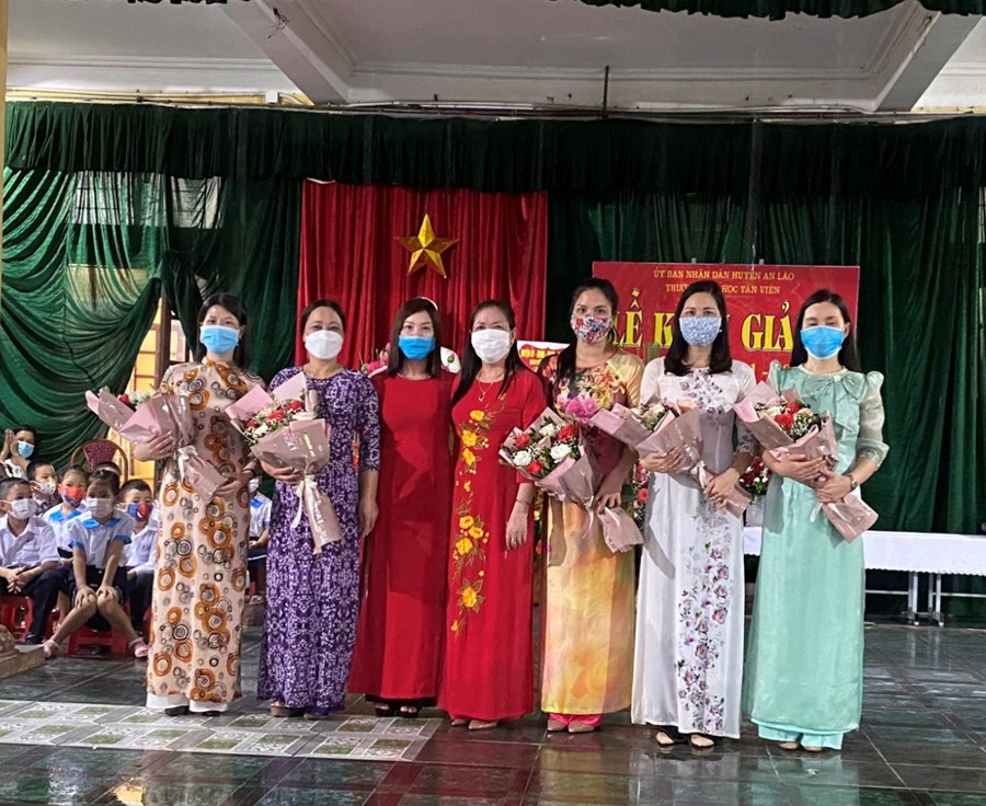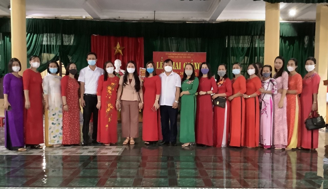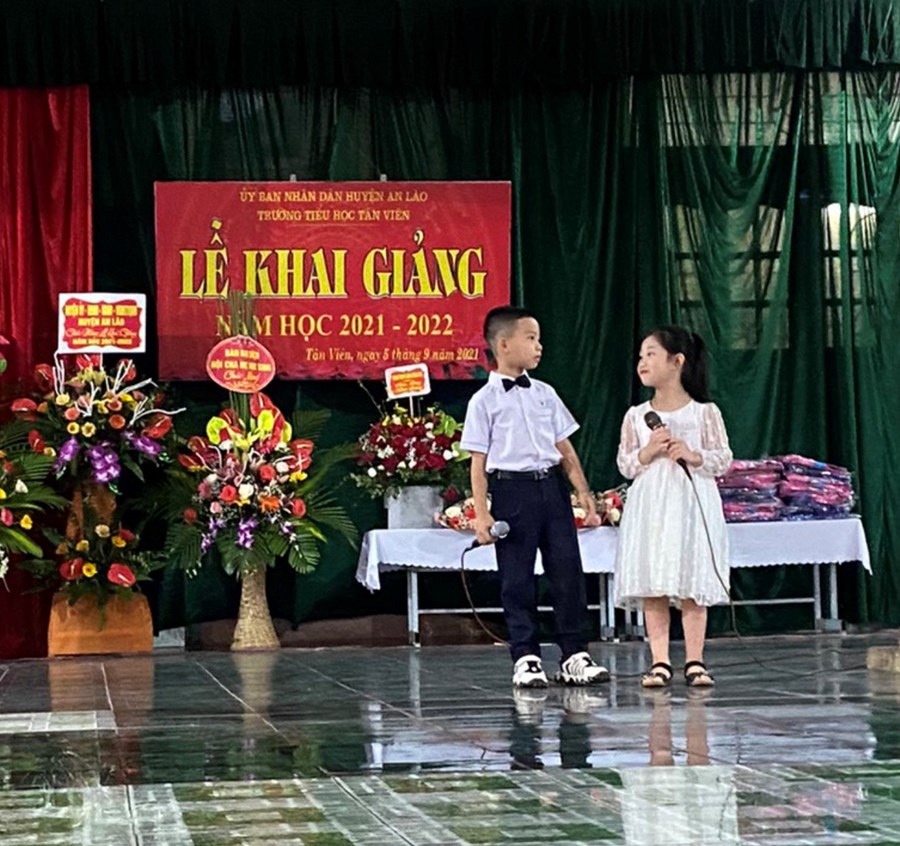 Các ông bà trong ban đại diện cha mẹ học sinh các lớp, các thầy cô giáo trong Hội đồng sư phạm nhà trường, 169 em học sinh lớp 1 của trường TH Tân Viên có mặt đông đủ và 720 em học sinh khối 2, 3, 4, 5 do tình hình dịch bệnh phức tạp không đến dự khai giảng trực tiếp nhưng cũng được dõi theo lễ khai giảng trực tuyến trên phần mềm Zoom.