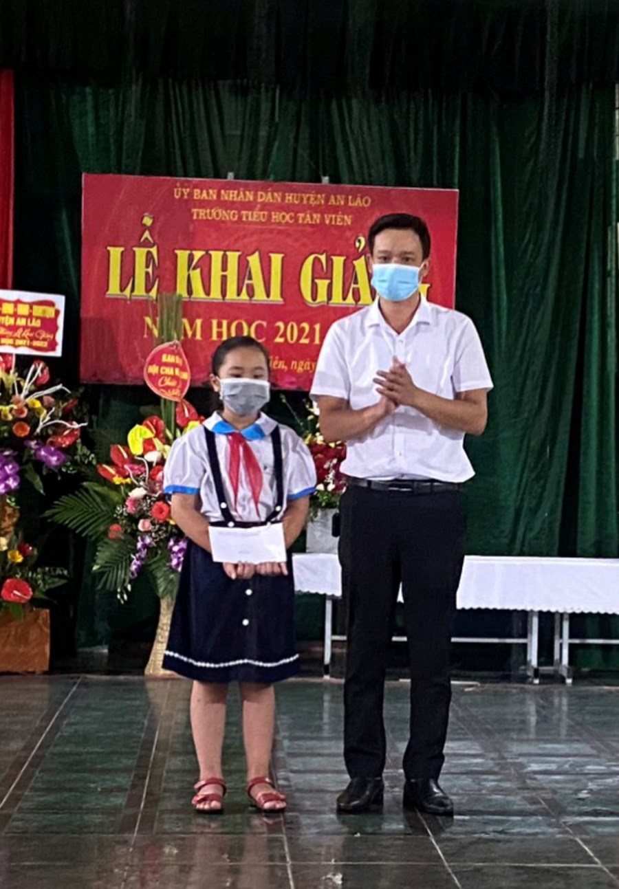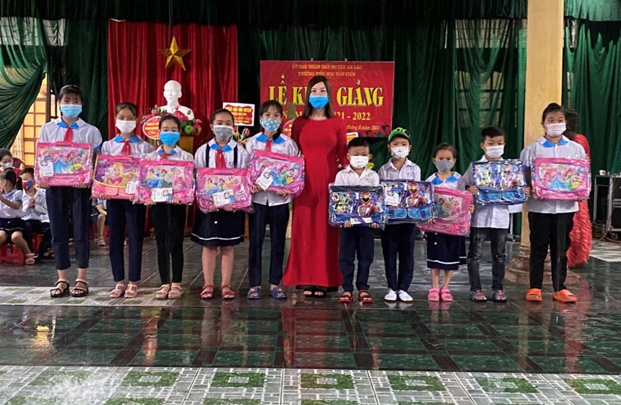Nhà trường tặng 19 cặp sách cho HS có hoàn cảnh khó khăn